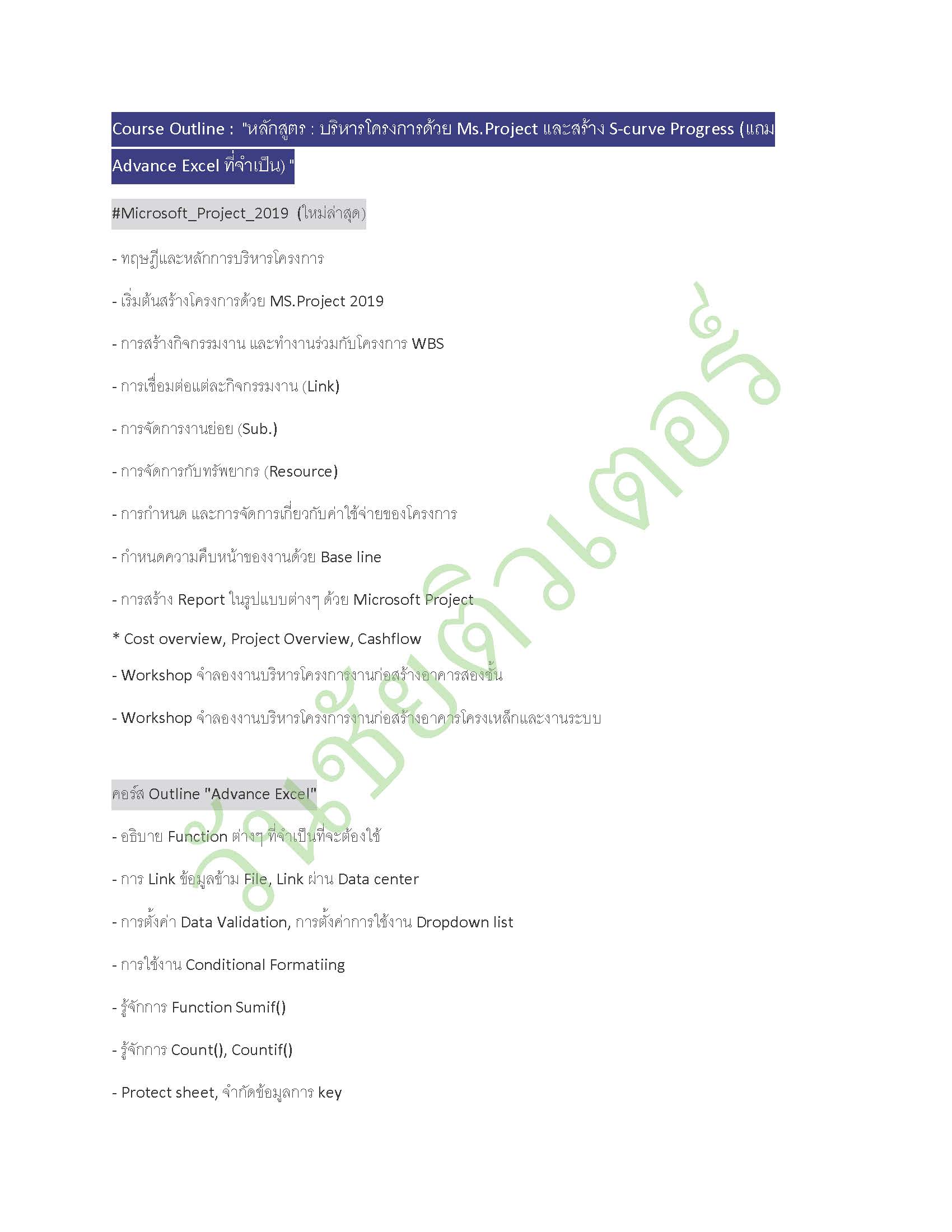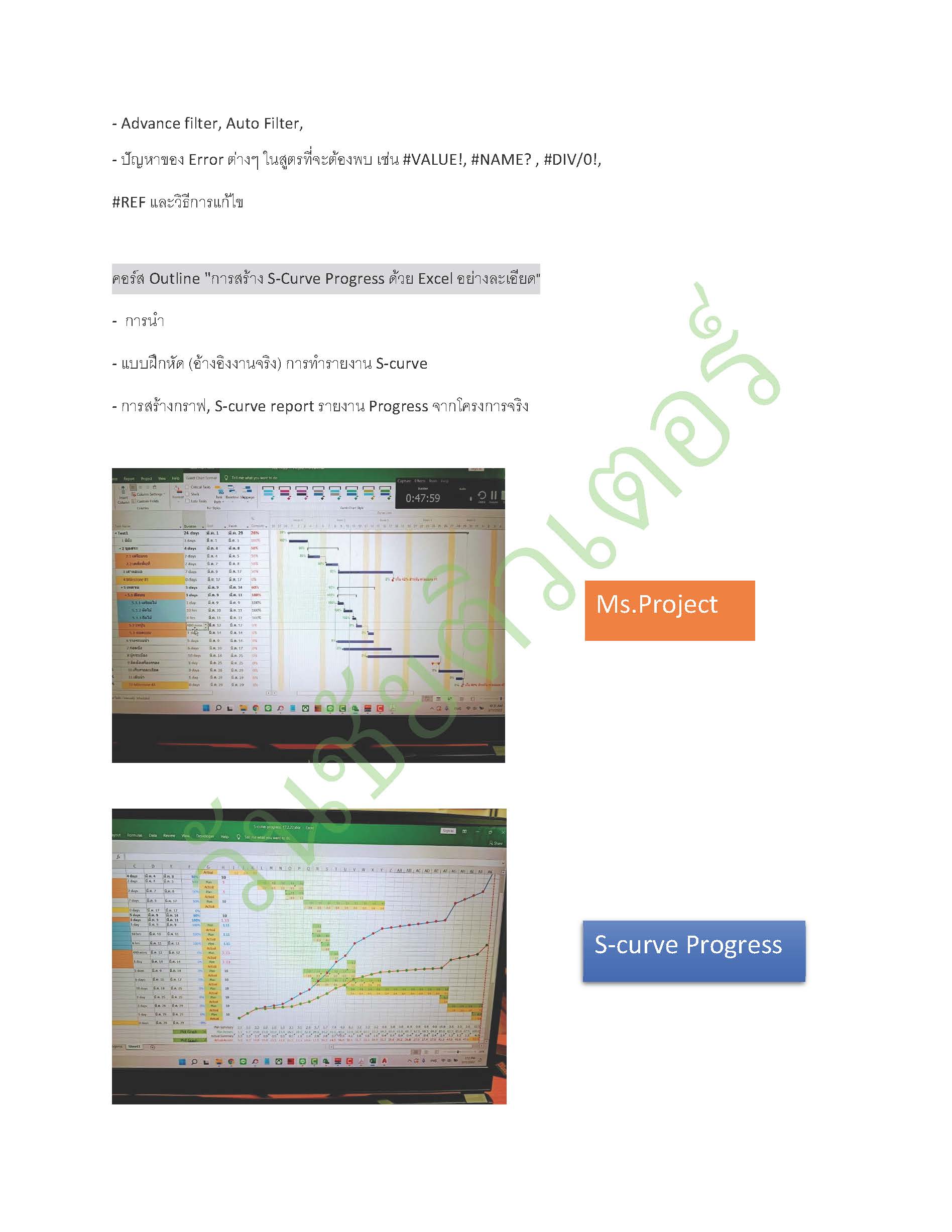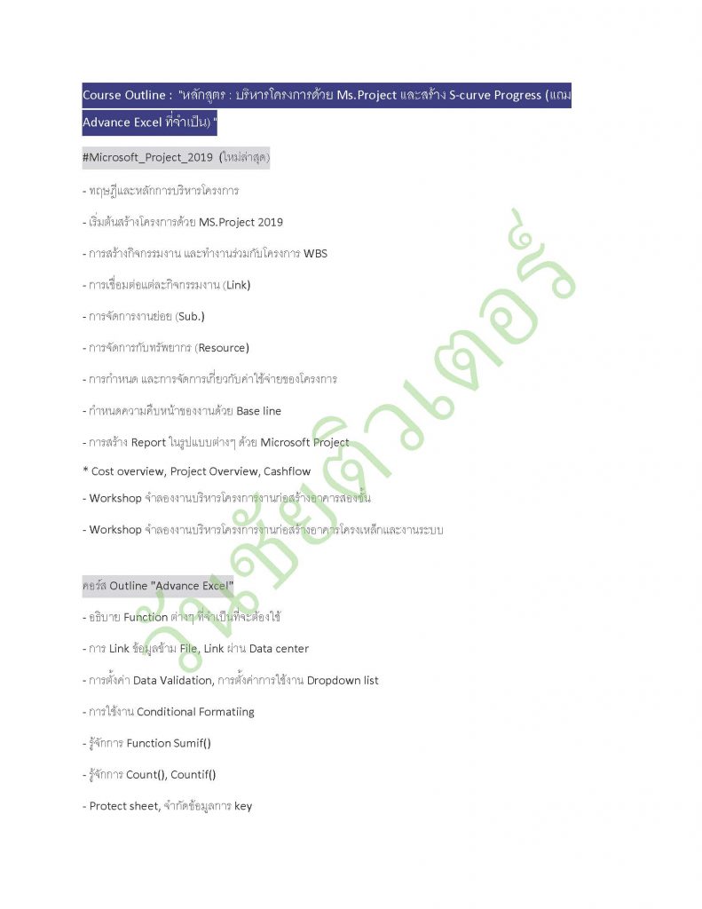 คอร์สเรียน Ms project and S curve progress (in-house สอนถึงออฟฟิตผู้เรียน)