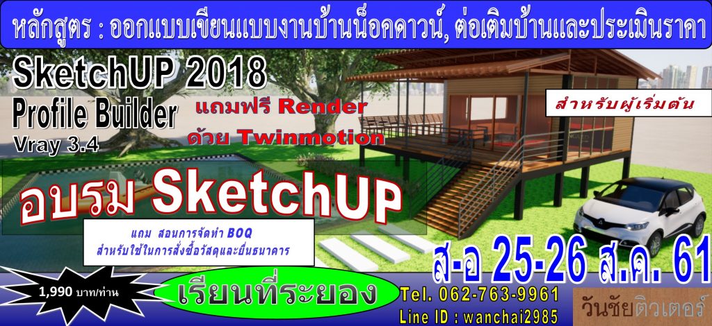 – การใช้งานคำสั่งกลุ่ม Modify เช่น Move, Copy, Push/Pull, Tape, Ruler, Orbit,